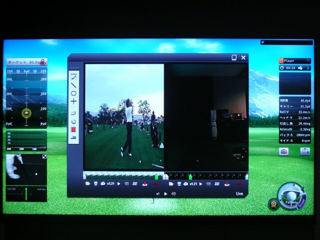 ワンショット形式の練習(ドライビングレンジ)、ボールのスピンや初速(ヘッドスピード)などの様々なデータが表示されます。